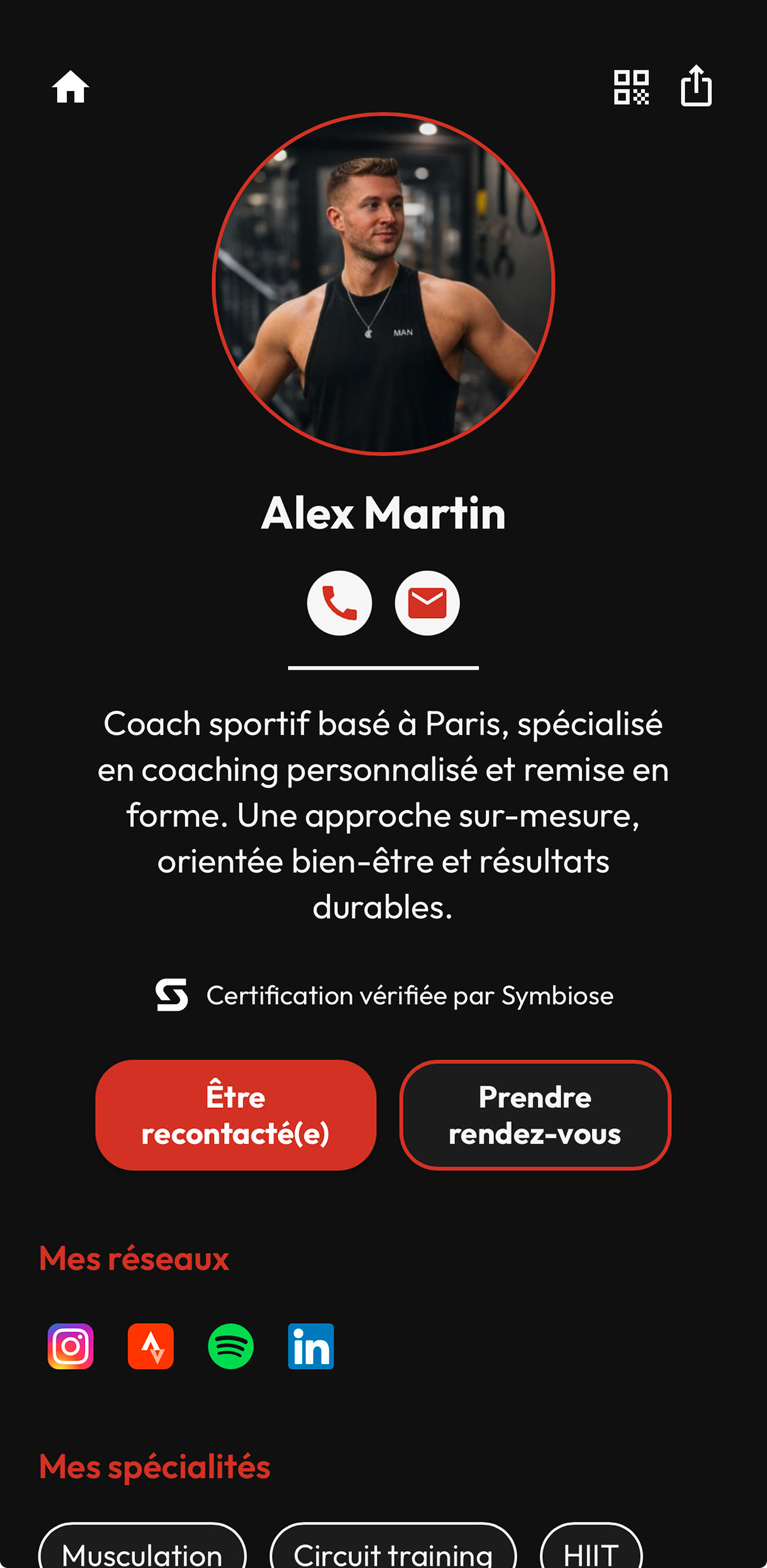 Symbiose s’adresse aux coachs sportifs indépendants, en lancement ou déjà installés, qui veulent une image professionnelle claire pour travailler avec des clients et des partenaires (salles, studios, structures).