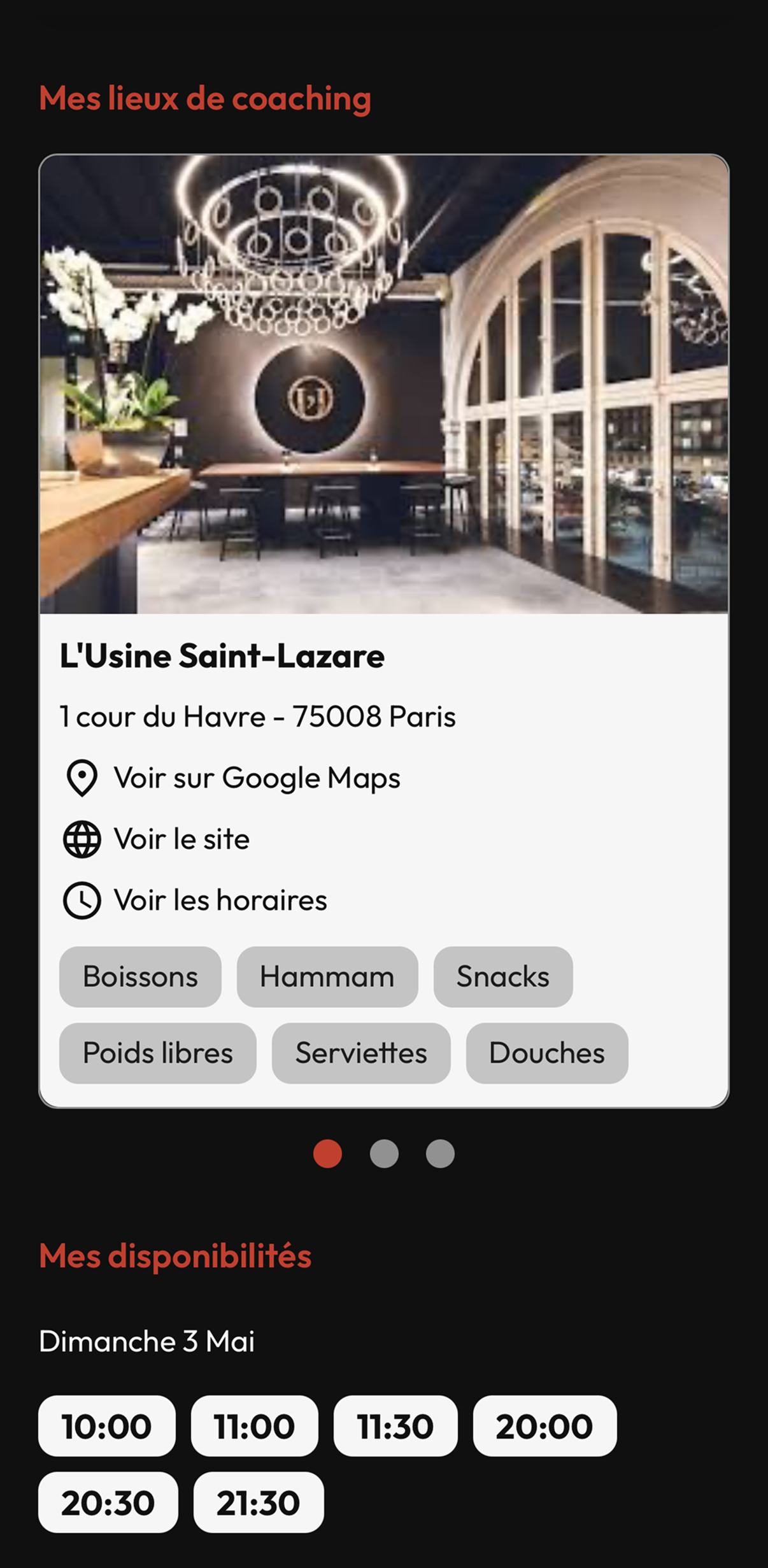 En salle, à domicile ou à distance : tout est précisé pour aider les clients à se projeter.
