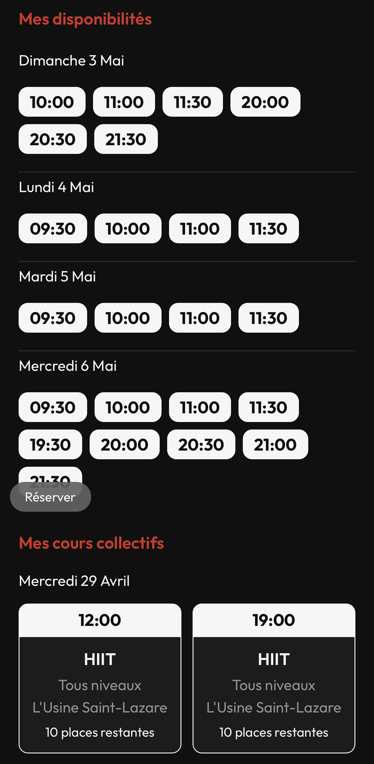 Les clients peuvent voir tes disponibilités, réserver une séance et payer directement en ligne par carte bancaire ou Apple Pay.